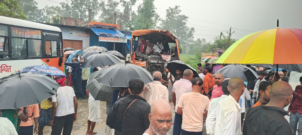 प्रत्यक्षदर्शियों के अनुसार महराजगंज से गोरखपुर जा रही रोडवेज बस और गोरखपुर से महराजगंज आ रही दूसरी बस की आमने-सामने भिड़ंत हो गई। इसी दौरान पीछे से आ रही तीसरी बस भी इनसे टकरा गई। अचानक हुई इस जोरदार टक्कर से बसों में बैठे यात्रियों को संभलने का मौका तक नहीं मिला और कई यात्री सीटों से गिरकर घायल हो गए। मौके पर चीख-पुकार मच गई।